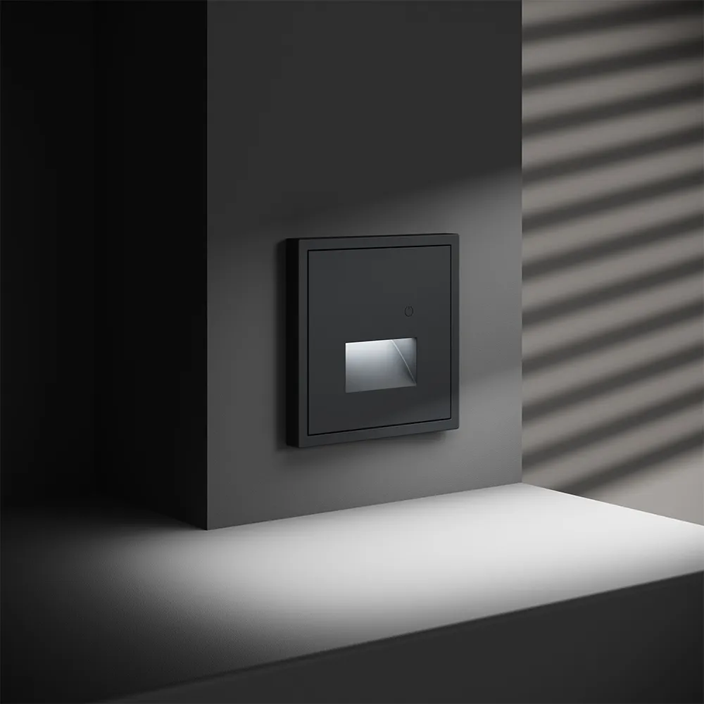 Корпус. Устройства выполнены в минималистичном стиле с утопленным светодиодом в корпусе, который незаметен для глаз и создает эффект света, исходящего из стены. Установка подсветок производится в стандартные подрозетники и подходит для всех рамок серии S70 от Voltum.