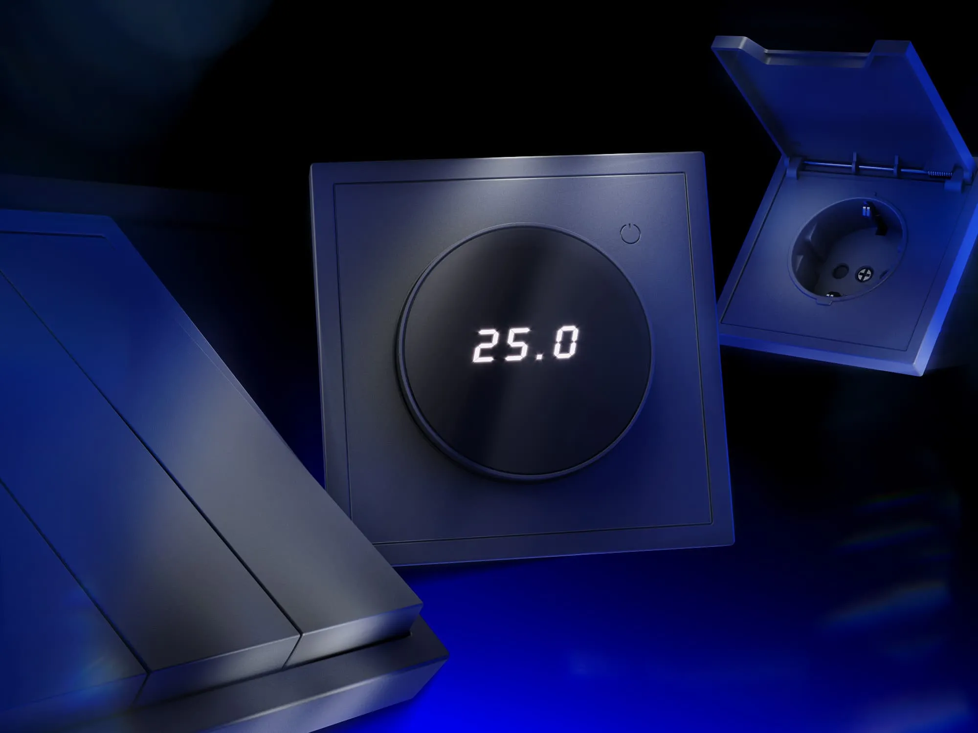 Проходной переключатель полностью совместим с пластиковыми и стеклянными рамками той же серии и гармонично вписывается в любую композицию из розеток, выключателей и умных устройств VOLTUM S70.