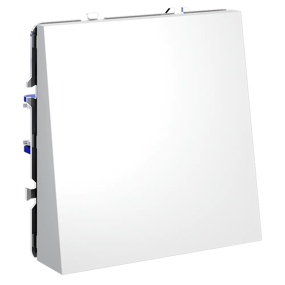• Габариты: ширина и высота — 71 мм, монтажная глубина — 45 мм (подходит для стандартных и углублённых подрозетников)