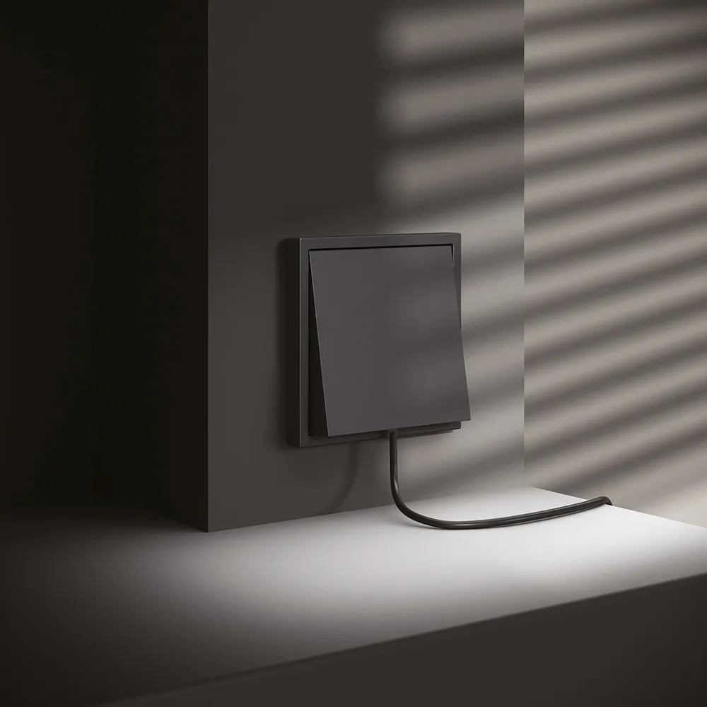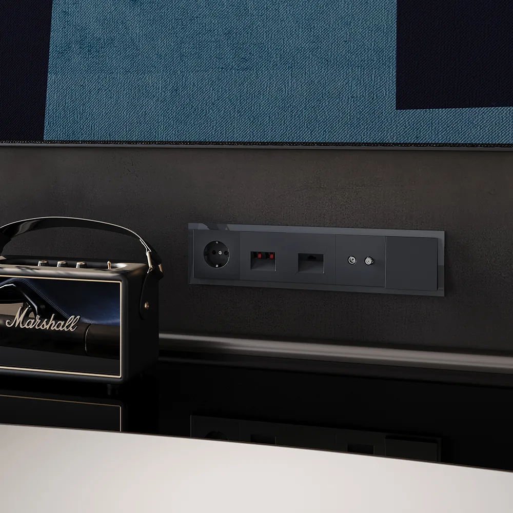 Вывод кабеля легко интегрируется в любую композицию на стене — рядом с розетками, выключателями или мультимедийными устройствами, создавая цельную, продуманную и чистую электрическую инфраструктуру.