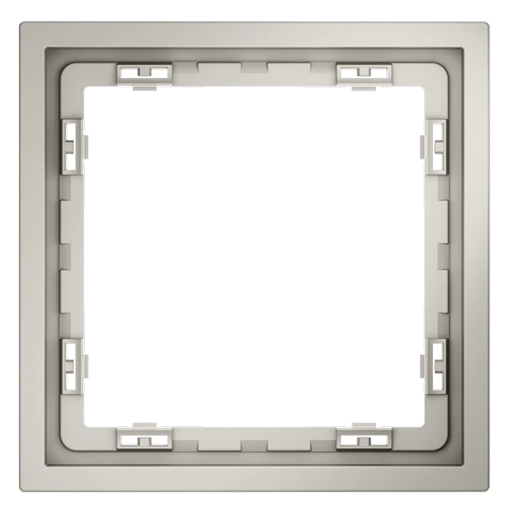 Обеспечивает быстрое и легкое соединение механизма с рамкой. Восемь фиксаторов по периметру нивелируют неровности стены и надежно удерживают конструкцию.