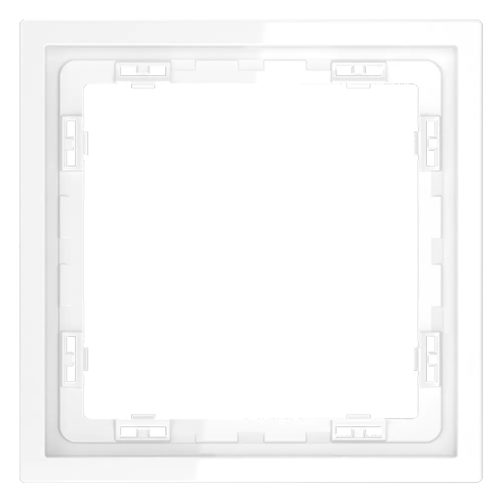 Обеспечивает быстрое и легкое соединение механизма с рамкой. Восемь фиксаторов по периметру нивелируют неровности стены и надежно удерживают конструкцию.